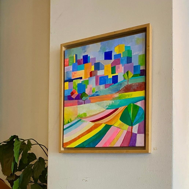 The artwork is a representation of the colourful neighbourhood of "EL risco de San Juan" in Las Palmas de Gran Canaria, a visually striking neighbourhood known for its colourful houses and narrow, winding streets that date back to the 17th century. Originally, fishermen used leftover paint from their boats to colour the house fronts.