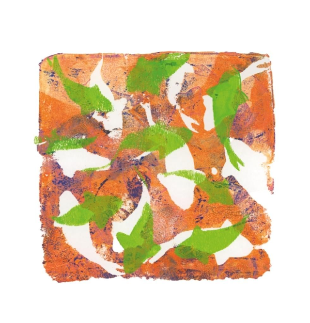 The original artwork is made with acrylics on A4 200gr paper using gelli plate printmaking technique and masking with a design.