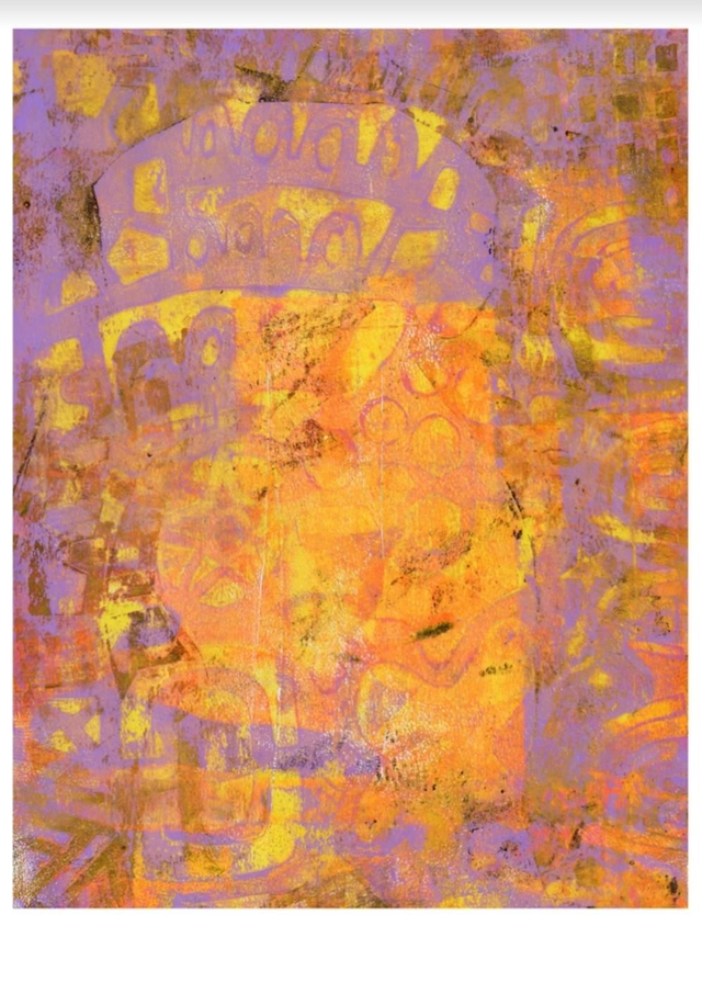 The original artwork is made with acrylics on A4 200gr paper using gelli plate printmaking technique and masking with a design.