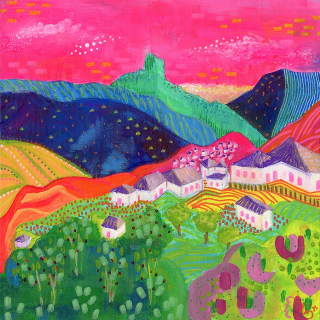 "Roque Bentayga I" is part of a collection of two artworks depicting a multicolour volcanic landscape in the mountains of Gran Canaria.