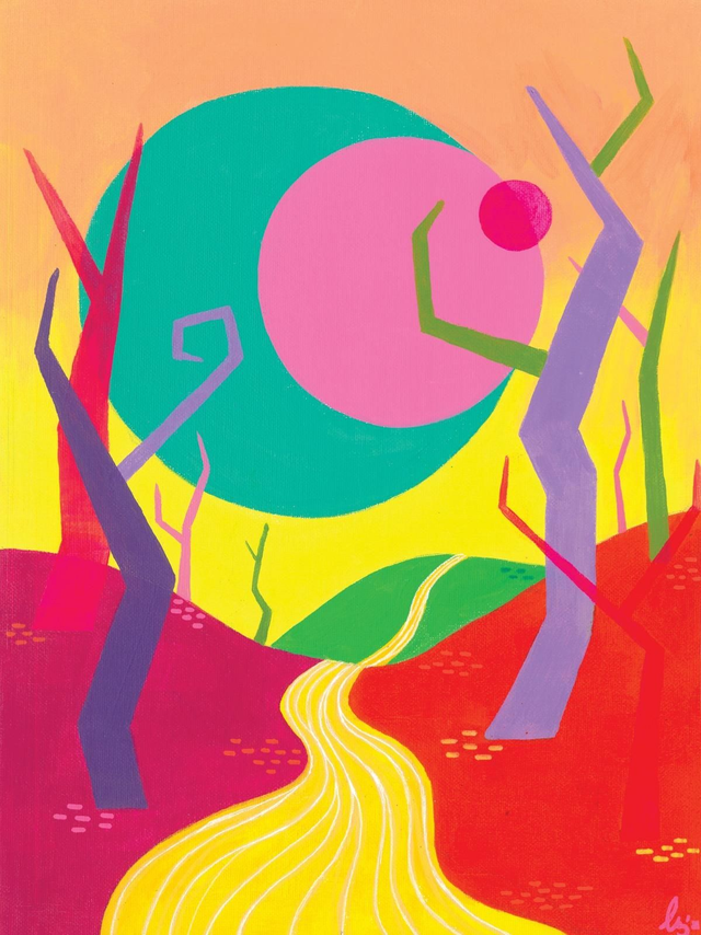 Using bold colours and a subtly unsettling landscape, "Two realities met here, and neither won" reflects the dissonance between what is seen and what is lived—the weight of dual truths: the self-facing the world, and the one that wrestles quietly within.