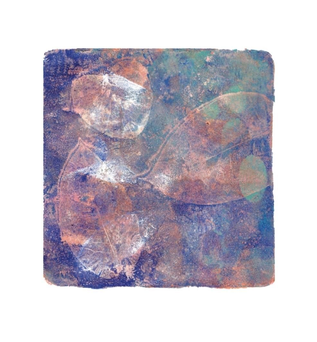 The original artwork is made with acrylics on A4 200gr paper using gelli plate printmaking technique and masking with natural elements.